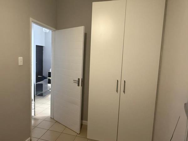 Discover modern living in this charming 2-bedroom free standing home with modern bathroom with shower and modern fitted kitchen. Situated within a secure, gated estate in Parsonsvlei, Port Elizabeth with a 24-hour guarded security post. Boasting a contemporary architectural design with an angular roofline and a stylish grey exterior, this property offers excellent kerb appeal. The bright blue front door adds a welcoming touch, complemented by a paved driveway leading to convenient paved parking for your vehicles.