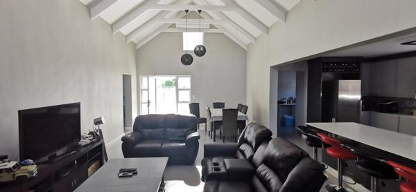 The open-plan layout seamlessly connects the living area to a modern, well-equipped kitchen featuring ample cupboard space and a separate scullery, ensuring both functionality and convenience. The main bedroom is a private retreat, fitted with built-in cupboards and a neat en-suite bathroom, while two additional bedroomsalso with built-in cupboardsare serviced by a separate family bathroom All of them have air conditioning in. 4th Room can be use as an office.