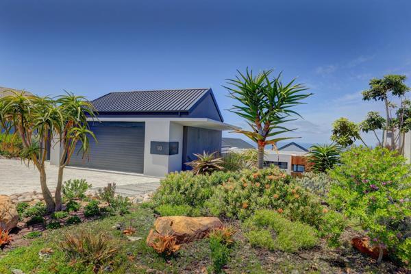 At the centre of the home, a deck with swimming pool forms a private courtyard, accessible from the lounge, kitchen, and two bedrooms. The lounge links to an enclosed indoor braai area with sliding doors opening onto a balcony, creating an expansive entertainment space. A green belt positioned in front of the property frames views of indigenous vegetation and the ocean beyond.