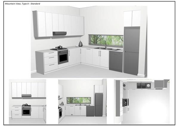 Each thoughtfully designed two-bedroom home will feature built-in cupboards in both bedrooms, along with a light-filled open-plan living and dining area that flows seamlessly into a modern kitchen, complete with an undercounter oven and gas hob.