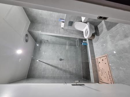 Upstairs leads onto an open-plan built-in mezzanine area that provides beautiful top-level harbour views, another main bedroom king size bed and a separate showertoilet area.
