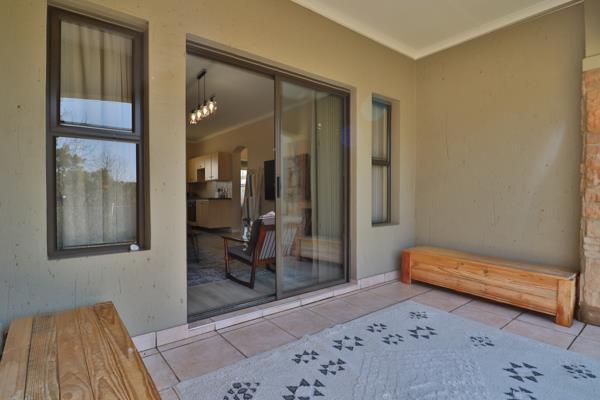 Situated within a secure golf and lifestyle estate, this pet-friendly residence ensures peace of mind with 24-hour security, electric fencing, an alarm system, and intercom access. Additional features include two dedicated parking bays, storage, and an irrigation system. This property is wheelchair-friendly and offers convenient access to local amenities.