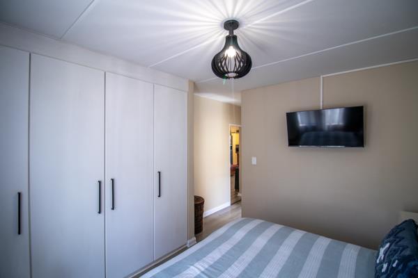 The apartment features a contemporary design, highlighted by a modern kitchen with granite countertops, perfect for culinary enthusiasts. The open-plan living and dining areas are equipped with air conditioning and braai space, ensuring comfort throughout the seasons.
