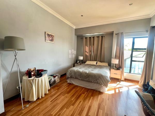 Upstairs, the home offers three generously sized bedrooms with stylish laminated flooring, including a main bedroom that opens onto a private balcony. Two modern bathrooms serve the upper level, with the main bedroom enjoying a full en-suite.