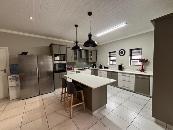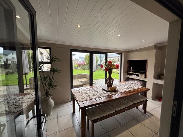 Step inside and you're welcomed by light-filled, open-plan living designed for connection and comfort. The sleek, modern kitchen is the heart of the home, boasting generous cupboard space, elegant finishes, and a separate laundryscullery that keeps everyday living seamlessly organised. The entertainment area flows effortlessly to an open built-in braai - a space made for long summer evenings, cosy winter gatherings, and everything in between. Here, hosting friends and family feels natural and easy. The home features three spacious bedrooms and two full, modern bathrooms, including a main en-suite. Crisp white Caesarstone countertops add a refined touch, while ample built-in cupboards throughout ensure practicality never compromises style.