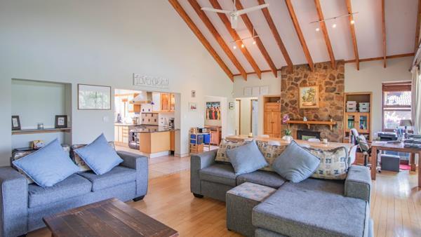 The kitchen is open plan and even allows for views from the breakfast counter opening up to a vaulted ceiling area which has sliding doors onto the veranda, as well as a stone fireplace which will bring the family together for that fun filled games nights round the fire.